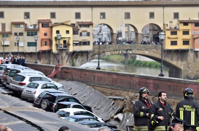 Niz parkiranih automobila u dužini od 200 metara propao je kroz asfalt zbog havarije vodovodne cevi u centru Firence, u blizini čuvenog gradskog simbola Ponte vekija.
