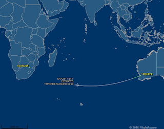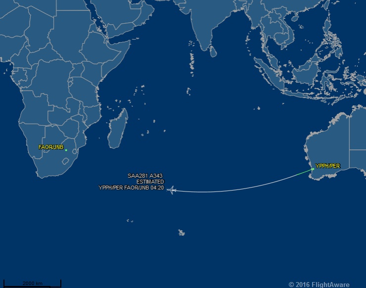 а) Соутх Африцан Аирваис лети директно из Перта до Јоханесбурга и назад, једном дневно (за сада: Лет САА281). Право преко Индијског океана, јужно од Мадагаскара и нигде близу Индонезији, Индији или Дубаи.